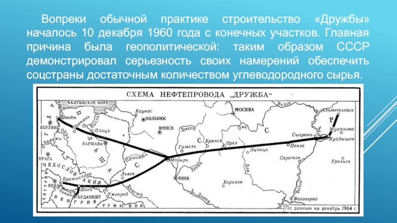 Слайд 23Вопреки обычной практике строительство «Дружбы» началось 10 декабря 1960 года