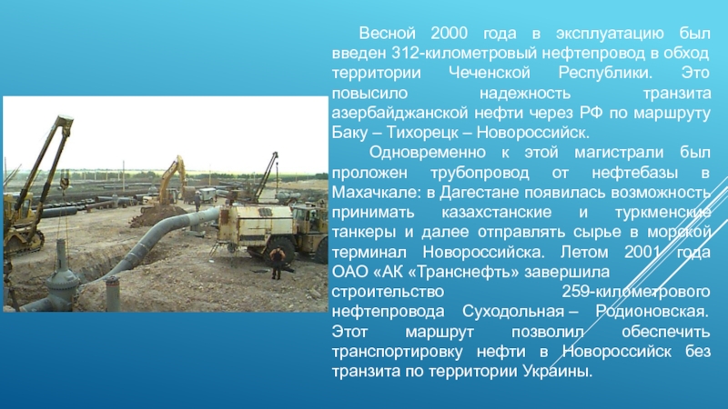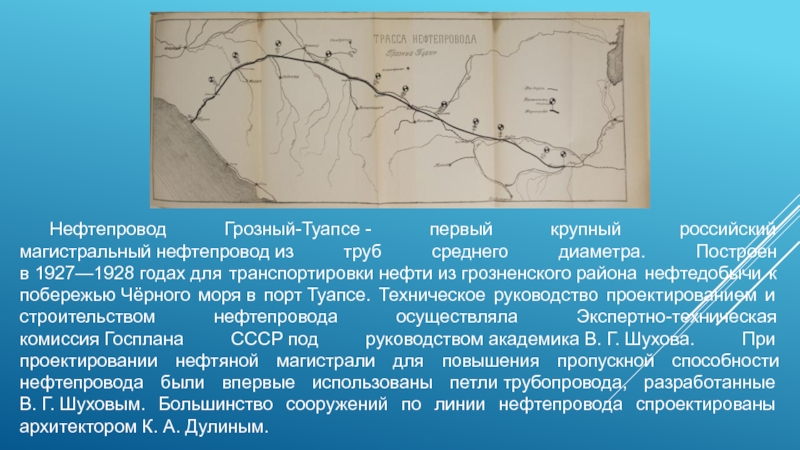 Слайд 10Нефтепровод Грозный-Туапсе - первый крупный российский магистральный нефтепровод из труб среднего диаметра. Построен