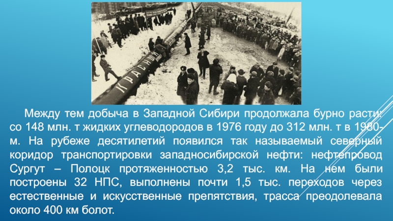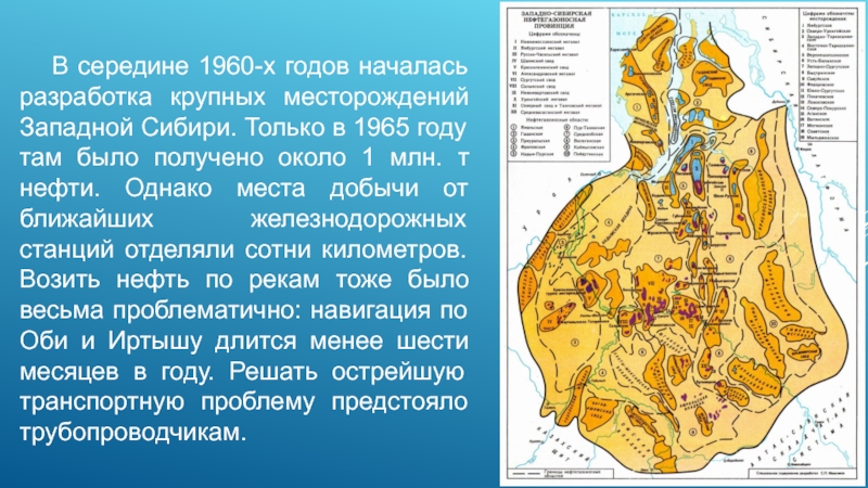 Слайд 26В середине 1960-х годов началась разработка крупных месторождений Западной Сибири.