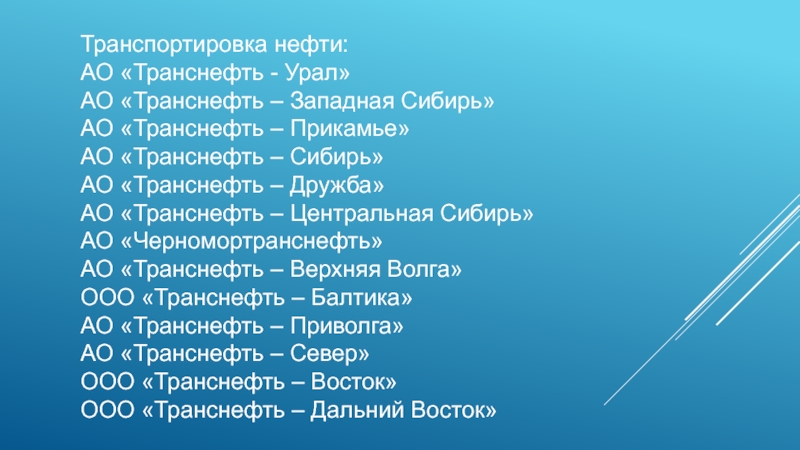 Слайд 69В систему ПАО «Транснефть» входят следующие предприятия по транспорту нефтепродуктов: