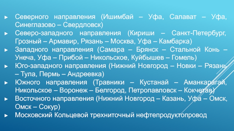 Слайд 67Северного направления (Ишимбай – Уфа, Салават – Уфа, Синеглазово –