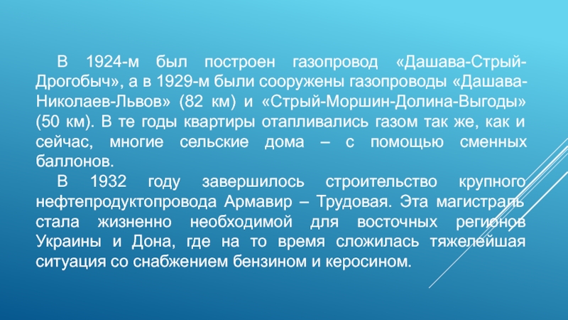 Слайд 11В 1924-м был построен газопровод «Дашава-Стрый-Дрогобыч», а в 1929-м были