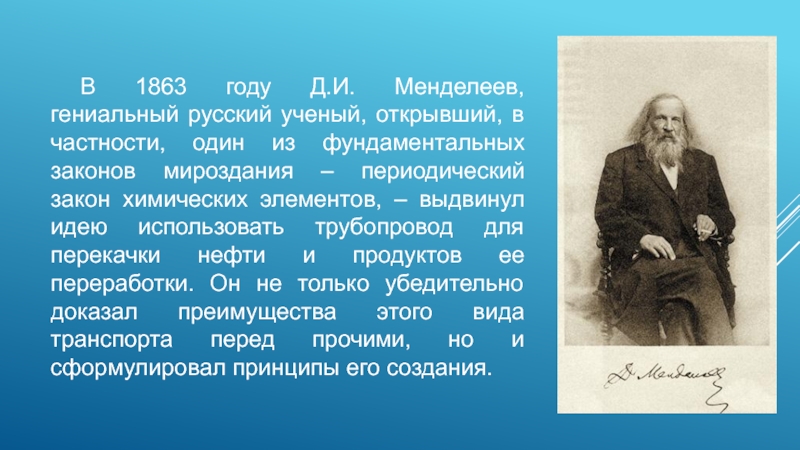 Слайд 3В 1863 году Д.И. Менделеев, гениальный русский ученый, открывший, в
