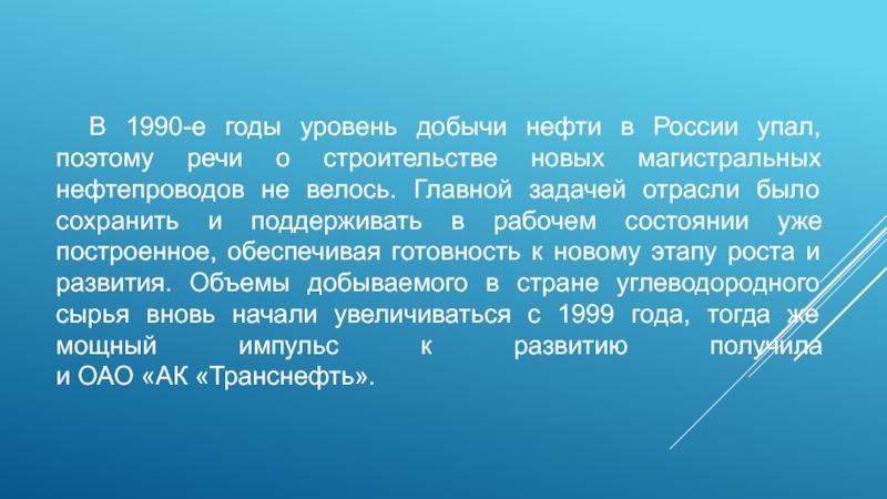 прервала развитие нефтяной отрасли. Однако и тогда продолжалось строительство трубопроводов,