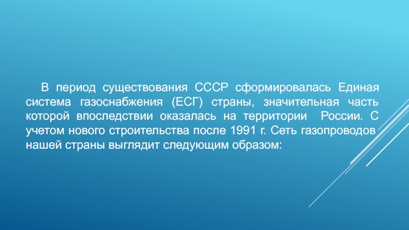 Слайд 72В период существования СССР сформировалась Единая система газоснабжения (ЕСГ) страны,