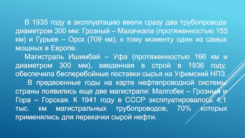 Слайд 12В 1935 году в эксплуатацию ввели сразу два трубопровода диаметром