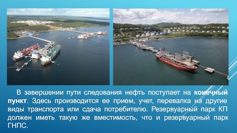 Слайд 21В завершении пути следования нефть поступает на конечный пункт. Здесь
