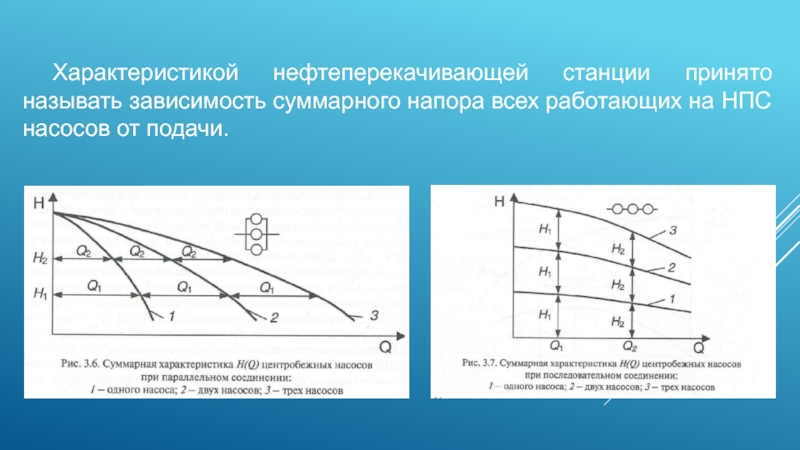 Слайд 44Характеристикой нефтеперекачивающей станции принято называть зависимость суммарного напора всех работающих