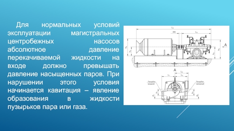 Слайд 38Для нормальных условий эксплуатации магистральных центробежных насосов абсолютное давление перекачиваемой