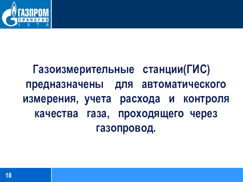 Слайд 18Газоизмерительные станции(ГИС) предназначены для автоматического