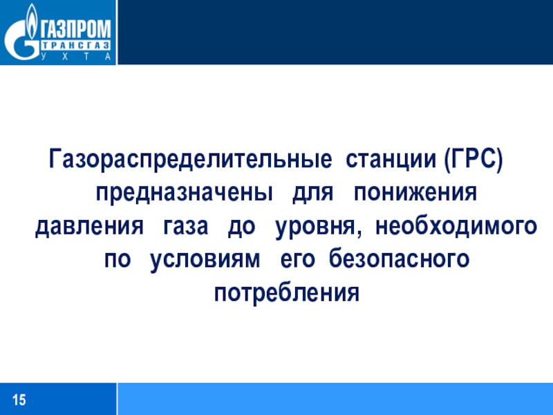 Слайд 15Газораспределительные станции (ГРС) предназначены для понижения давления