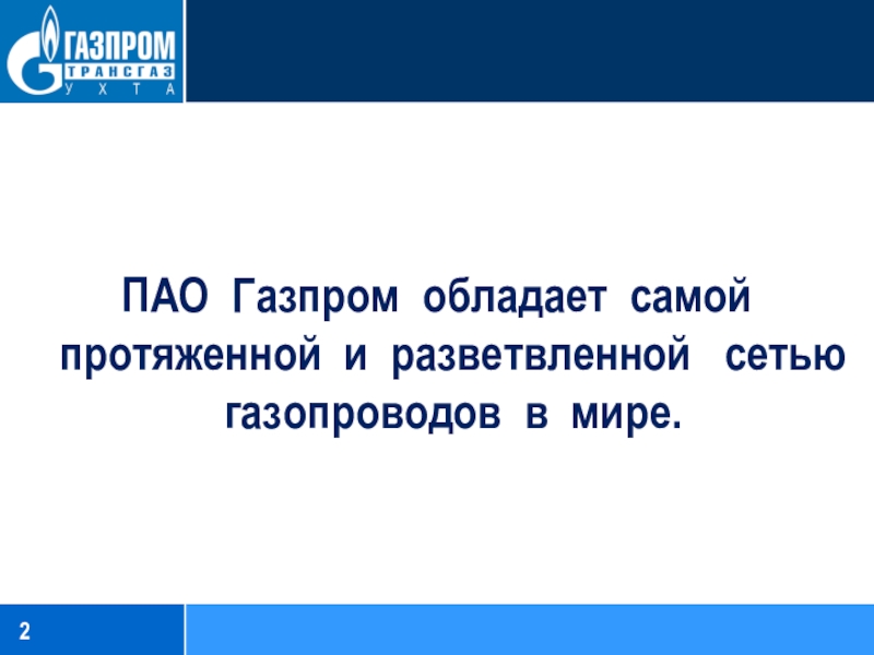 Слайд 2ПАО Газпром обладает самой протяженной и разветвленной сетью газопроводов