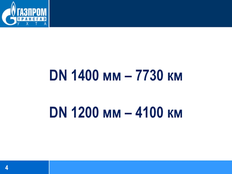 DN 1400 мм – 7730 кмDN 1200 мм – 4100 км