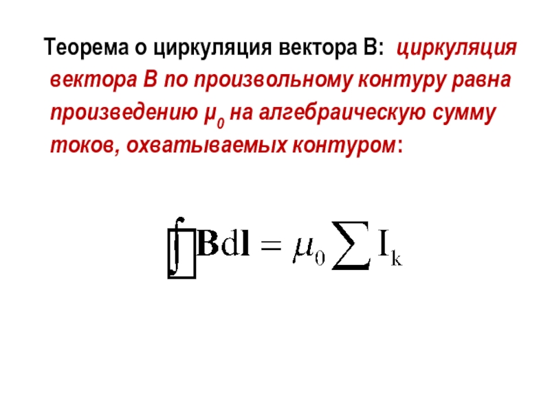 Слайд 19 Теорема о циркуляция вектора В: циркуляция вектора