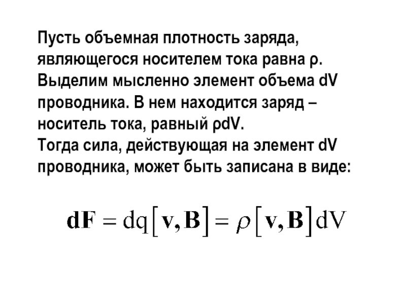 Тогда сила, действующая на элемент dV проводника, может быть записана в виде: