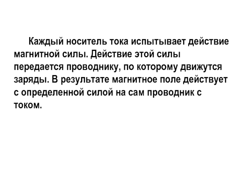 Слайд 21 Каждый носитель тока испытывает действие магнитной силы.
