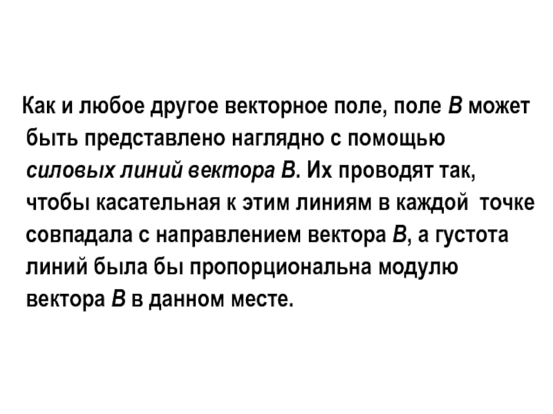 Их проводят так, чтобы касательная к этим линиям в каждой точке совпадала с направлением вектора В, а густота линий была бы пропорциональна модулю вектора В в данном месте.