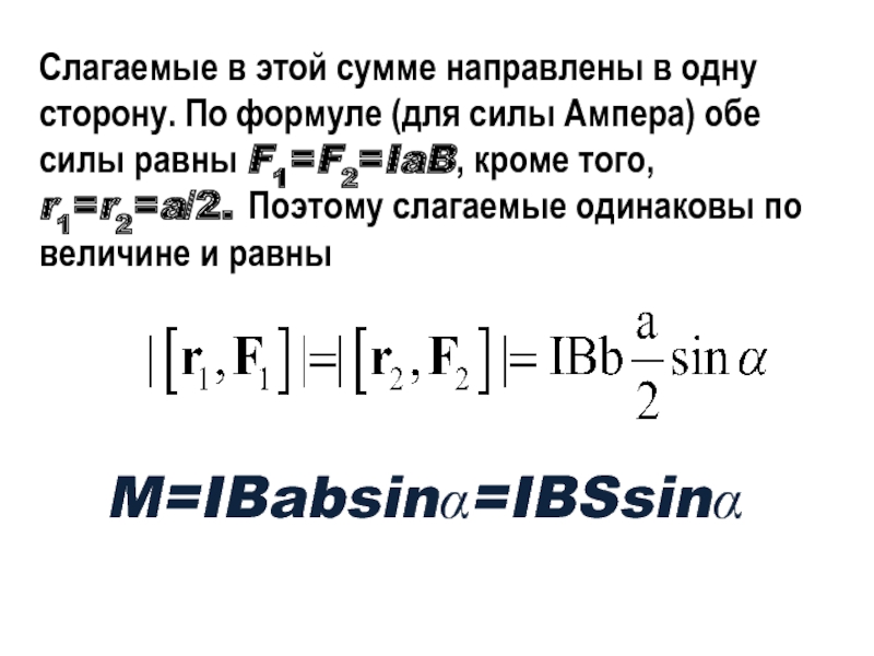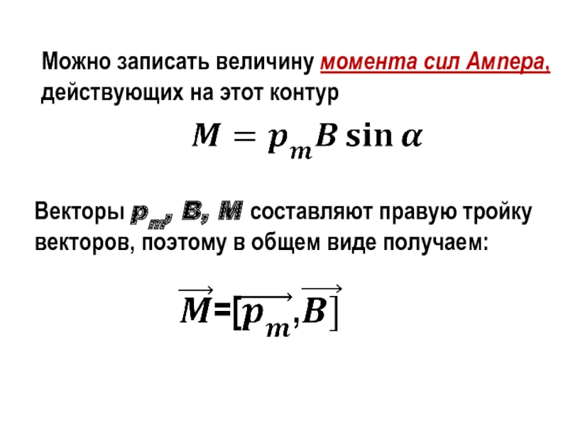 Слайд 35Можно записать величину момента сил Ампера, действующих на этот контур