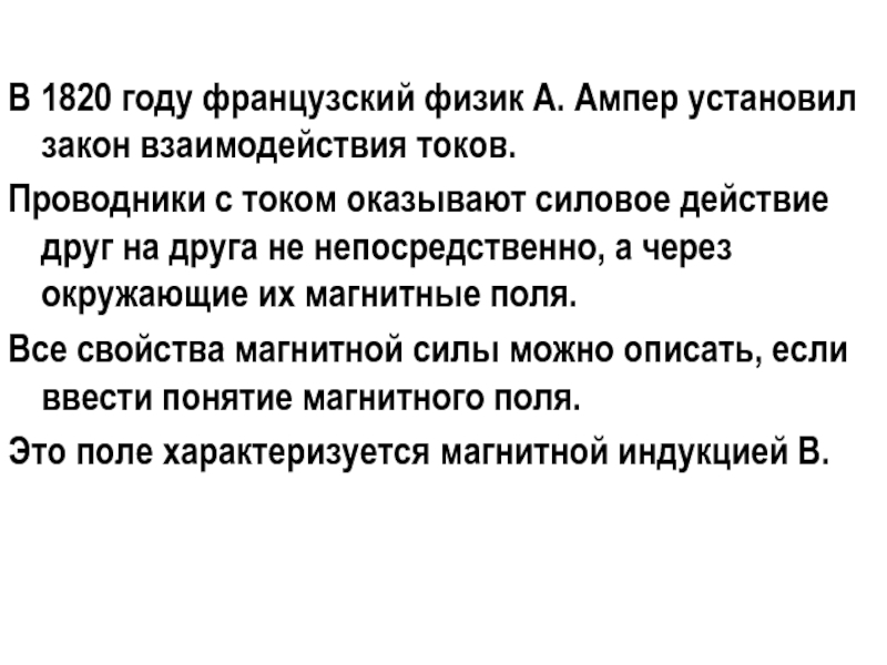 Слайд 4В 1820 году французский физик А. Ампер установил закон взаимодействия