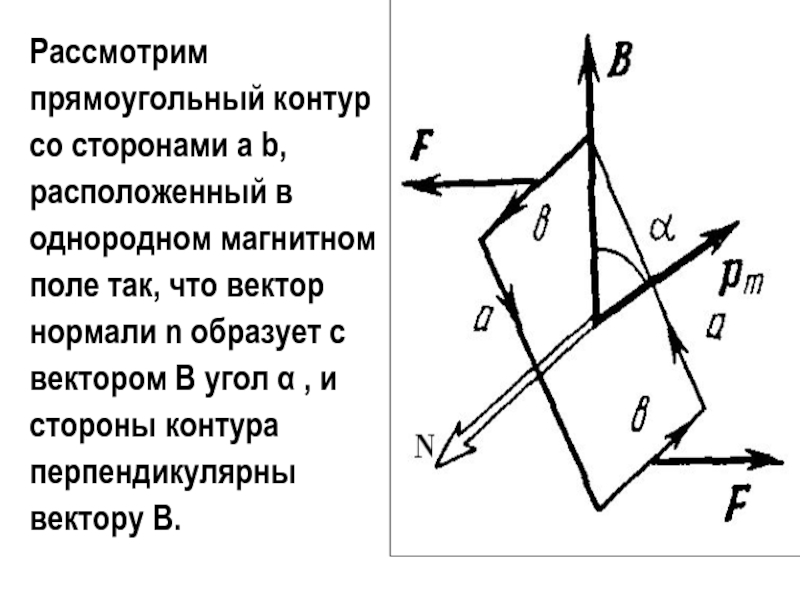 Слайд 31Рассмотрим прямоугольный контур со сторонами a b, расположенный в однородном