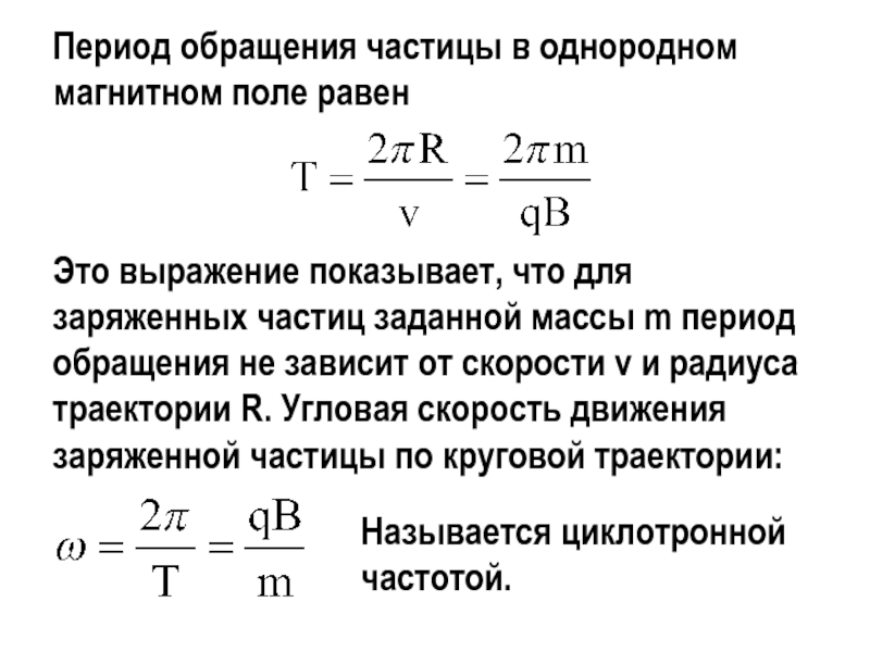 Слайд 7Период обращения частицы в однородном магнитном поле равен