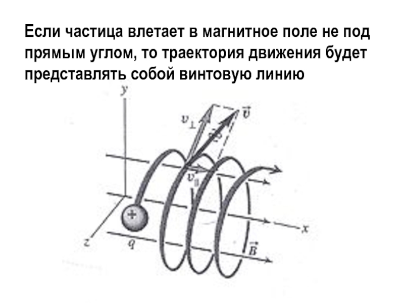 Слайд 9Если частица влетает в магнитное поле не под прямым углом,