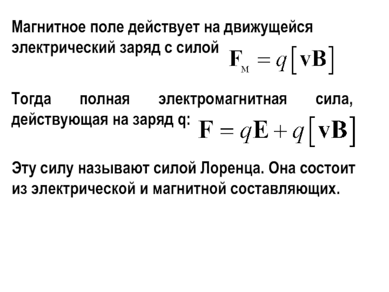 силой Лоренца. Она состоит из электрической и магнитной составляющих.