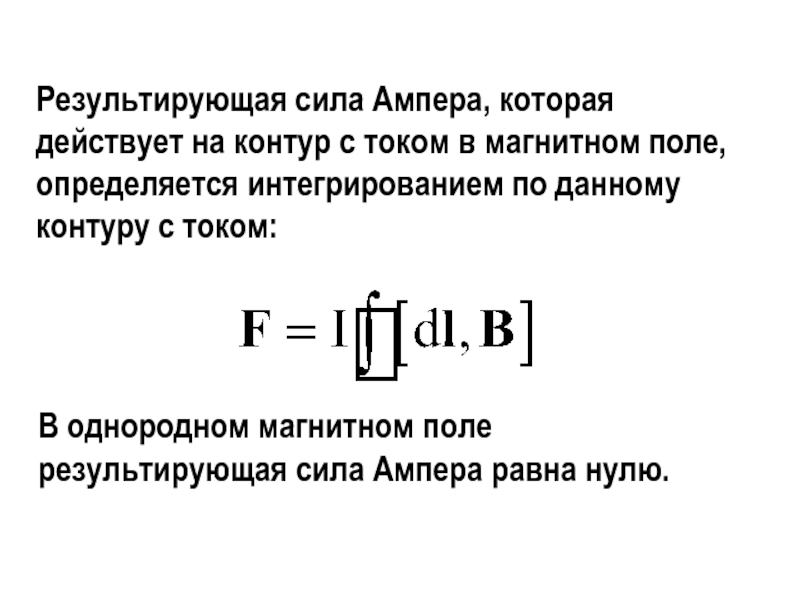Слайд 26Результирующая сила Ампера, которая действует на контур с током в