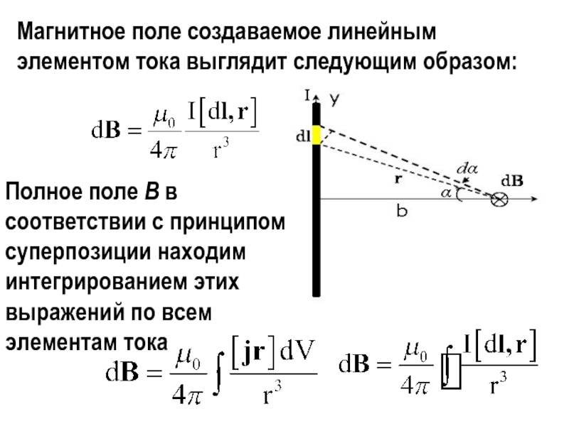 Слайд 14Магнитное поле создаваемое линейным элементом тока выглядит следующим образом:
