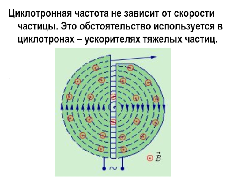 Слайд 8Циклотронная частота не зависит от скорости частицы. Это обстоятельство используется