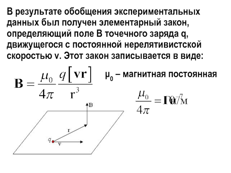 поле В точечного заряда q, движущегося с постоянной нерелятивистской скоростью