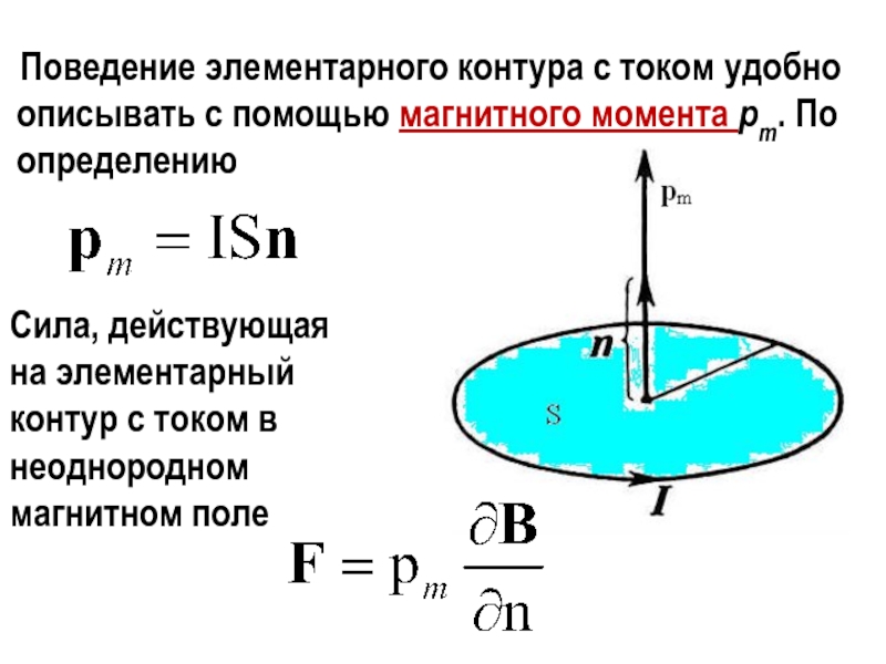 Слайд 27 Поведение элементарного контура с током удобно описывать с