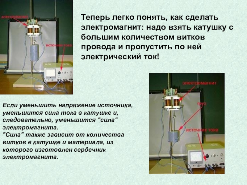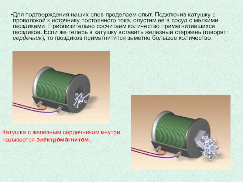 различие полюсов катушки с током. Познакомить с изменениями магнитных свойств