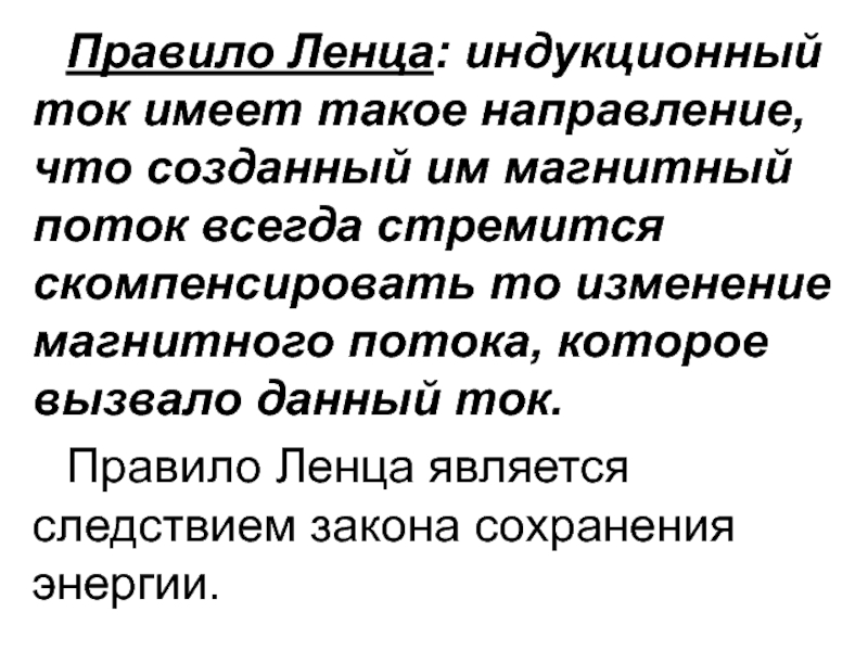 магнитный поток всегда стремится скомпенсировать то изменение магнитного потока, которое