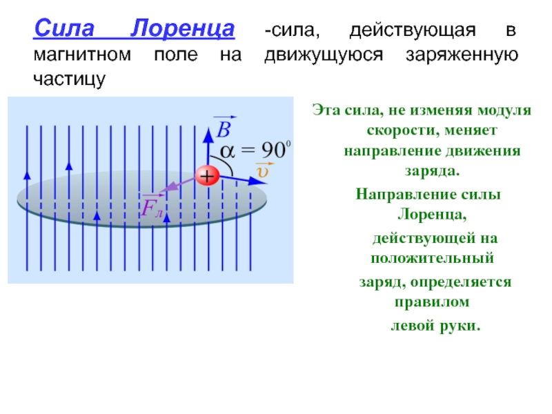 Эта сила, не изменяя модуля скорости, меняет направление движения заряда.