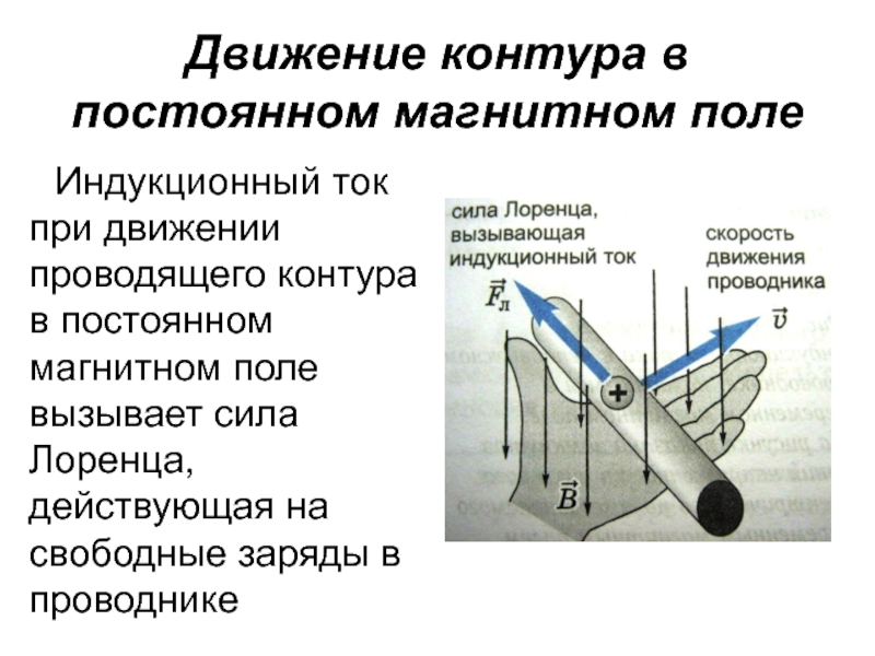 контура в постоянном магнитном поле вызывает сила Лоренца, действующая на