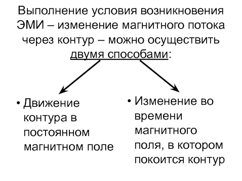 Слайд 46Выполнение условия возникновения ЭМИ – изменение магнитного потока через контур