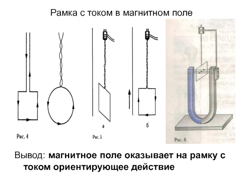 Магнитное поле обнаруживается по действию на электрический ток (на движущиеся