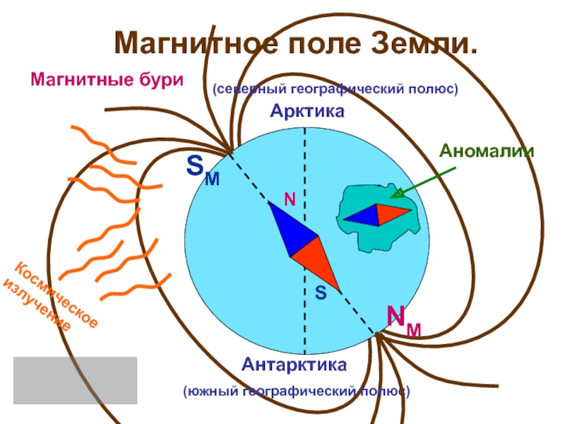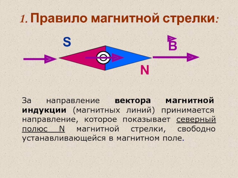 направление, которое показывает северный полюс N магнитной стрелки, свободно устанавливающейся