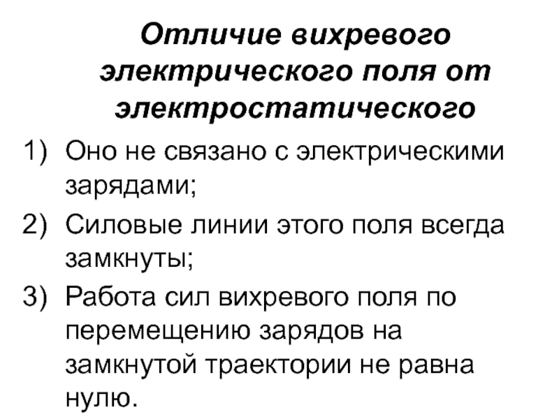 Слайд 49Отличие вихревого электрического поля от электростатического