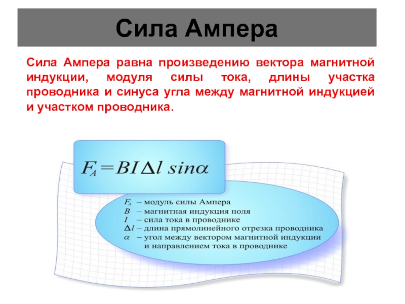 Сила Ампера равна произведению вектора магнитной индукции, модуля силы