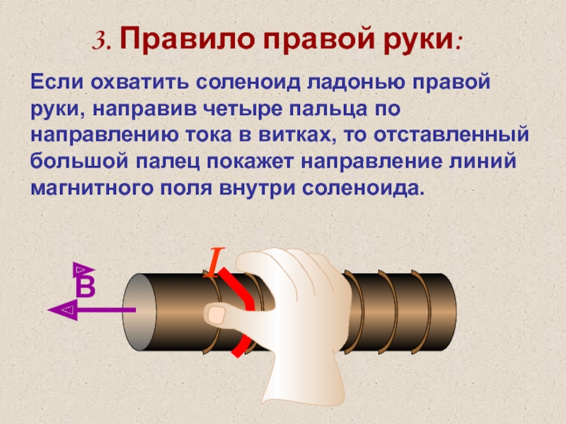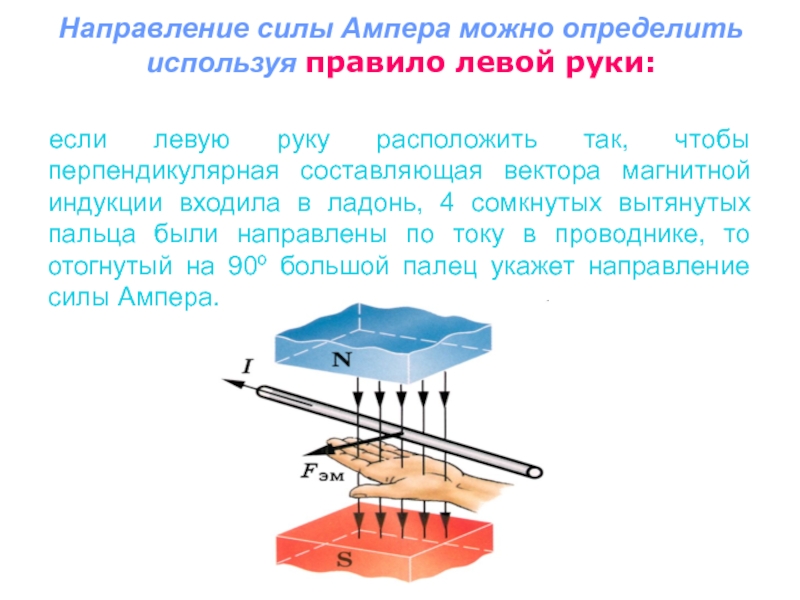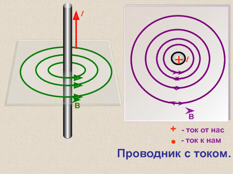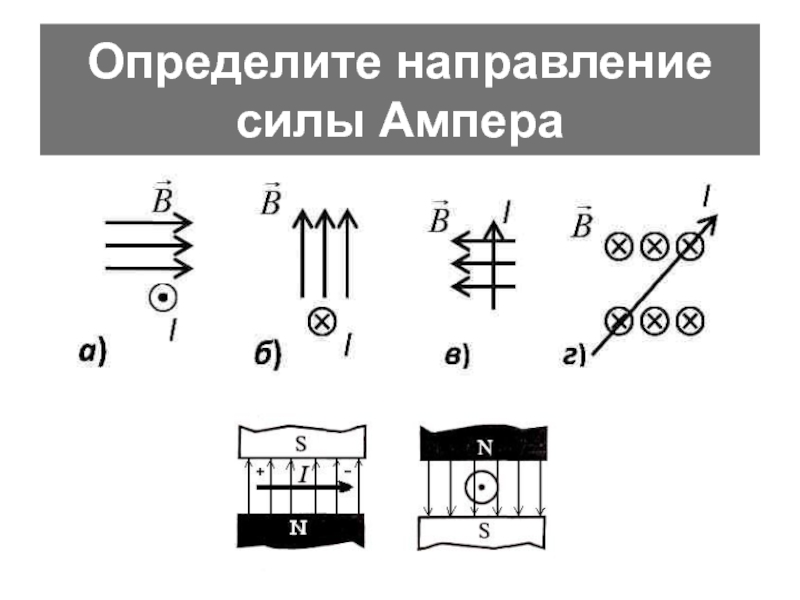 Слайд 20 Определите по направлению тока в проводнике направление вектора