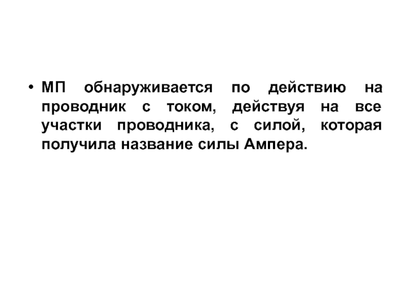 Слайд 23МП обнаруживается по действию на проводник с током, действуя на