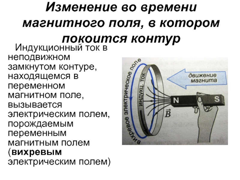 Слайд 48Изменение во времени магнитного поля, в котором покоится контур
