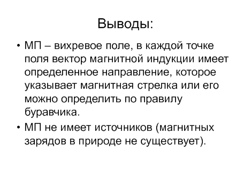 МП не имеет источников (магнитных зарядов в природе не существует).