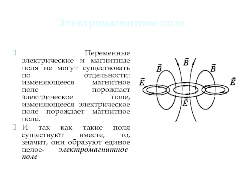 могут существовать по отдельности: изменяющееся магнитное поле порождает электрическое поле,