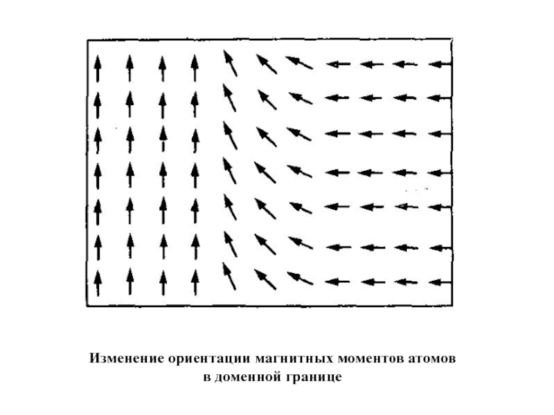 Слайд 3Изменение ориентации магнитных моментов атомов в доменной границе