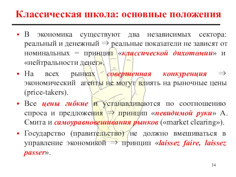 Слайд 14Классическая школа: основные положения