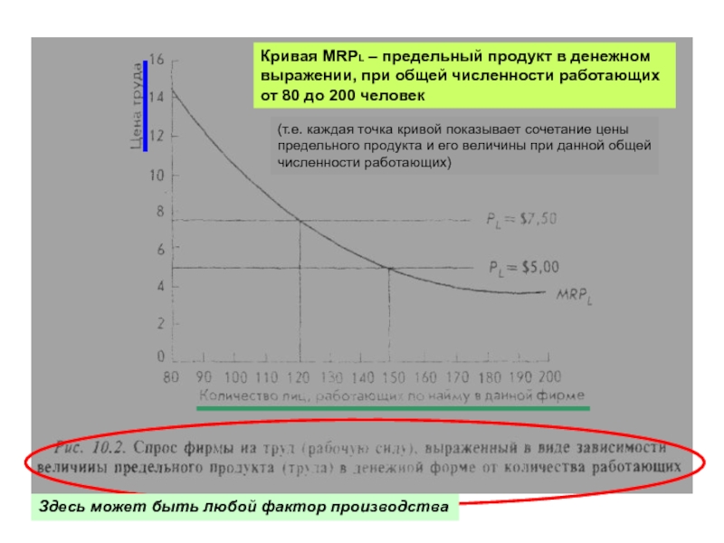 (т.е. каждая точка кривой показывает сочетание цены предельного продукта и его величины при данной общей численности работающих)