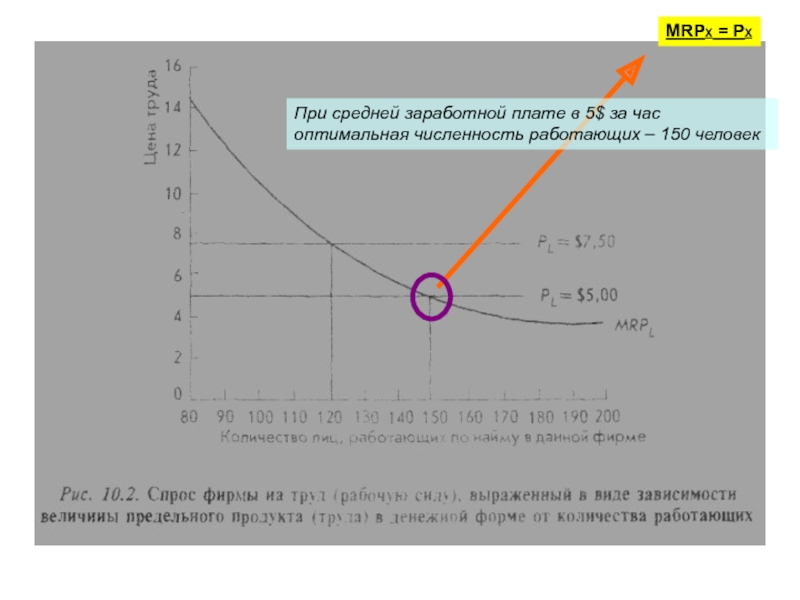 Предельный продукт в денежном выражении: MRPL = 0,5$ х 50 = 25$
